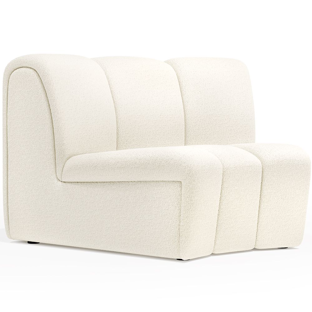 Wij presenteren ons bankmodule met een gebogen ontwerp dat het concept van comfort en moderniteit herdefinieert. Gestoffeerd in hoogwaardige bouclé-stof is dit module niet alleen visueel opvallend met zijn elegante vorm, maar biedt het ook een luxueuze zitervaring. Perfect voor hotels en restaurants die waarde hechten aan kwaliteit en design, kan dit module naadloos worden gecombineerd met ons rechte module, waardoor je een op maat gemaakte bank kunt creëren die past bij jouw stijl en ruimte. Elk detail van dit module is zorgvuldig ontworpen om een perfecte mix van eigentijdse stijl en ongeëvenaard comfort te bieden.