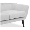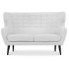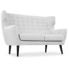 Deze driezitsbank in Scandinavische stijl is gestoffeerd met zacht linnen, zijn schuine poten zijn van massief hout in donkere kleur. Het is een bank met hoge rugleuning en capitonnage. De zitkussens zijn gevuld met schuim en zijn zacht en zeer comfortabel.