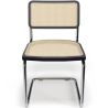 Boho Bali eetkamerstoel - Gure is gemaakt van polypropyleen, waardoor het veel sterker en duurzamer is en het uiterlijk van een natuurlijke rieten stoel imiteert. U hoeft zich geen zorgen te maken als de stoel vlekt of verkeerd wordt gebruikt, omdat polypropyleen met water kan worden schoongemaakt en het uiterlijk vele jaren lang als nieuw blijft. Bovendien voegen de verchroomde metalen poten een vleugje moderniteit en verfijning toe aan de stoel, waardoor een interessant contrast ontstaat met de bohemien- en tropische elementen. Deze poten zorgen voor een solide en stabiele basis, wat de duurzaamheid en stabiliteit van de stoel garandeert gedurende vele jaren. Comfort is ook een prioriteit met zijn ergonomische zitting en rugleuning, ontworpen om optimale ondersteuning te bieden terwijl u van uw maaltijden geniet. De combinatie van hoogwaardige materialen en zorgvuldig vakmanschap zorgt voor een stevige en duurzame stoel die u zal vergezellen tijdens talloze plezierige momenten aan tafel.