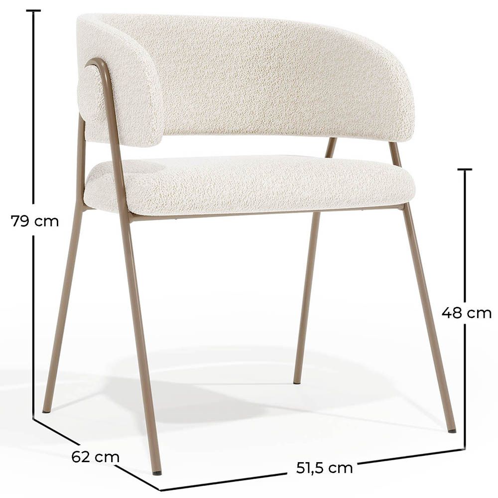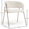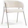 De combinatie van bouclé-bekleding en metalen poten in een champagnekleur creëert een gebalanceerde en harmonieuze esthetiek. Onze Manar stoel past zich aan aan verschillende decoratieve stijlen, van eigentijds tot klassiek, en wordt het middelpunt van elke eetkamer. De metalen poten in een zachte en verfijnde champagnetint geven een moderne en verfijnde uitstraling. Metaal staat bekend om zijn kracht en duurzaamheid, waardoor een stevige en veerkrachtige stoel wordt gegarandeerd die dagelijks gebruik kan doorstaan zonder zijn charme te verliezen. De bouclé-bekleding van de stoel voegt een vleugje textuur en zachtheid toe, waardoor een unieke visuele en tactiele ervaring ontstaat. De delicate en vervlochten lussen van de bouclé-stof zorgen voor een luxueus en aangenaam gevoel bij het zitten, waardoor elke maaltijd een moment van comfort en ontspanning wordt.