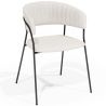 De eetkamerstoel, bekleed met bouclé-stof en met een metalen frame in het zwart, is een elegant en veelzijdig element dat perfect stijl en comfort combineert. De bouclé-stoffen bekleding geeft de stoel een zachte en gezellige textuur en biedt een gevoel van luxe en comfort aan degenen die erop zitten. Deze stof is ook duurzaam en bestand tegen slijtage, waardoor het een ideale keuze is voor drukbezochte ruimtes zoals hotels, restaurants en ook voor thuisgebruik. Het metaal dat in het frame wordt gebruikt, is stevig en robuust en zorgt voor een solide en stabiele basis voor de stoel. Bovendien is de zwarte kleur elegant en veelzijdig, waardoor het naadloos kan worden geïntegreerd in verschillende decoratiestijlen.