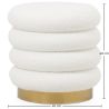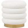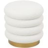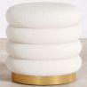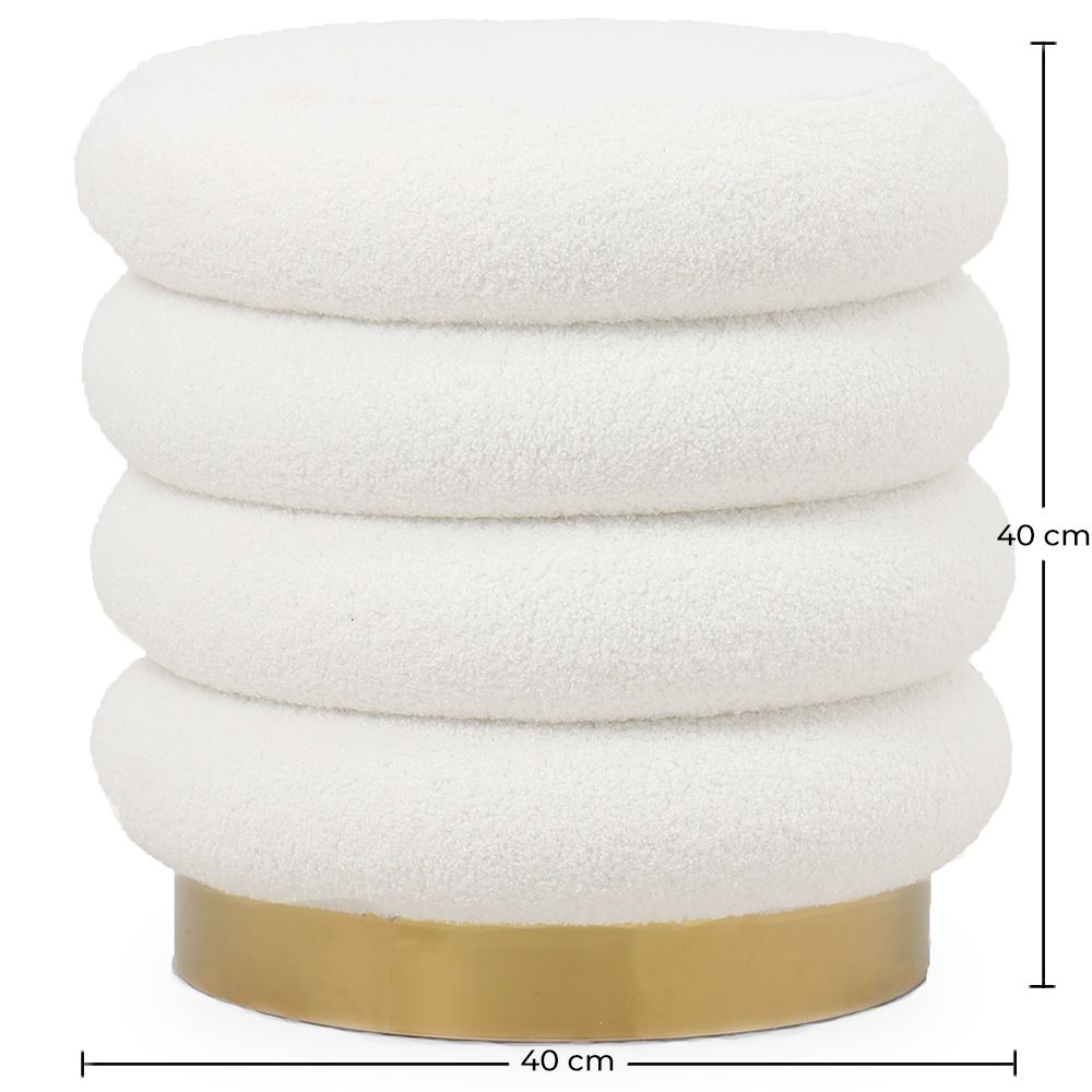 Geniet van maximaal comfort en stijl met onze ronde poef gestoffeerd in bouclé-stof die doet denken aan schapenwol. Met een houten structuur en een gouden basis combineert deze poef elegantie en moderniteit in een uniek design. De zachte en gezellige bekleding biedt een luxueuze zitervaring, terwijl het ronde design een eigentijdse uitstraling biedt. Perfect om een vleugje verfijning toe te voegen aan elke ruimte, is deze poef synoniem voor superieure kwaliteit en verfijnde stijl.