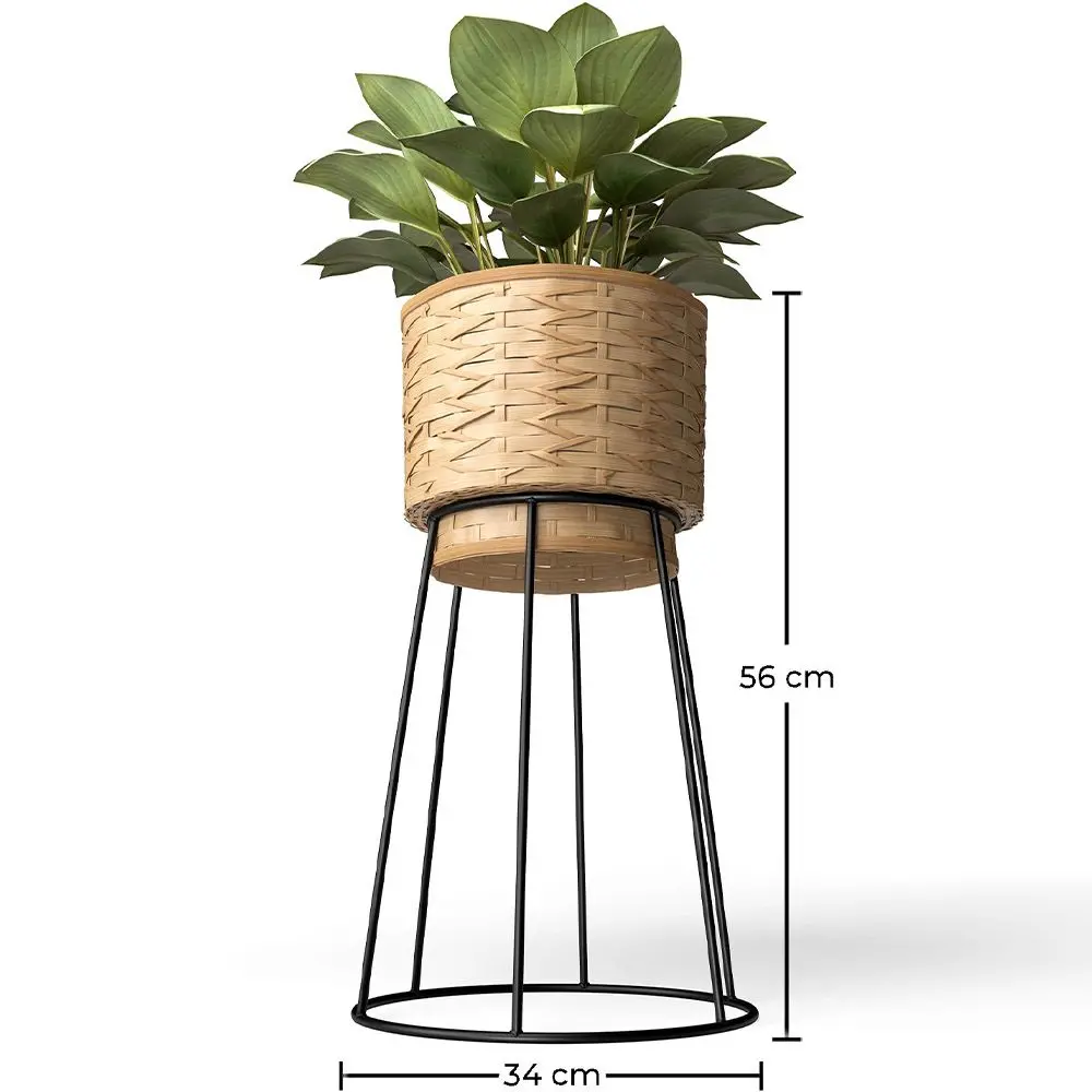 Geef je ruimte een vleugje rustieke charme met onze plantenbak van natuurlijke vezels en metalen structuur. Het gevlochten patroon van natuurlijke vezels brengt warmte en authenticiteit, terwijl de verouderde metalen structuur een vleugje vintage toevoegt. Deze plantenbak is de perfecte keuze voor degenen die oud met nieuw willen combineren, waardoor een boheemse sfeer ontstaat die charme en persoonlijkheid uitstraalt in elke hoek van je huis of tuin.